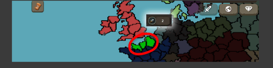 地图上闪烁绿色的区域代表可攻击或占领的目标。只需点击该区域并选择剑形图标即可发起战斗或实施占领。若未见绿色提示,可能是尚未宣战,或当前缺乏攻击点数。每次行动消耗1点攻击点,但每回合会自动重置。通过学院升级可提升攻击点上限。