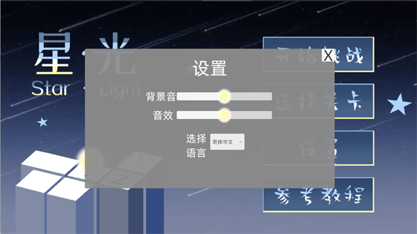 StarLight游戏是一款拥有独立物理引擎支持的街机闯关游戏!融合了各种经典的音乐元素、街机元素和闯关元素,让玩家可以体验不一样的闯关挑战!孤独飘零,何处归乡,星光为伴,指引航向。一切等你来闯关和挑战吧!游戏提供了丰富的设置选项,支持音量调节和语言切换,让玩家能够根据个人喜好定制体验。在净化回忆和黑暗元素后,玩家将面临一个影响现实的关键选择,游戏的剧情也随之展开。