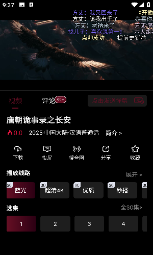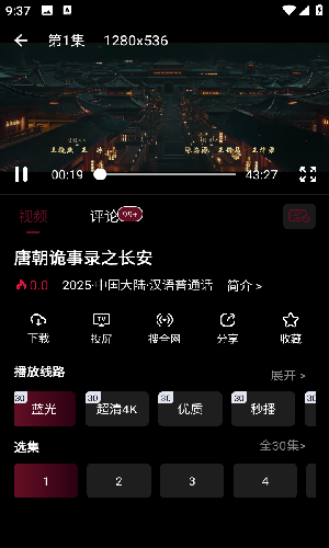 在播放界面下方找到播放线路选项,点击右侧展开按钮。