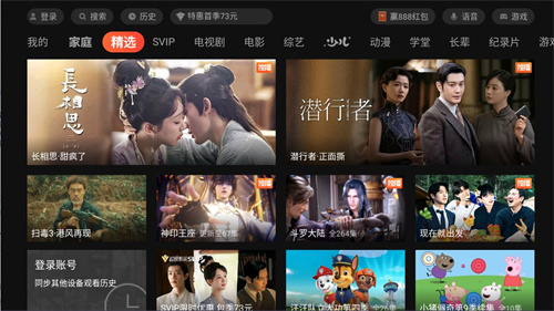 针对客厅大屏场景深度优化选片与播放流程,找片更快,播放更稳。