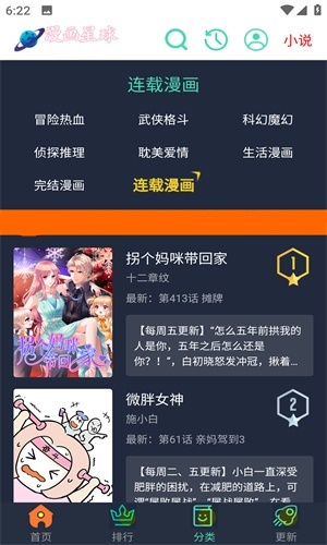 用户可通过首页分类快速查找感兴趣的漫画类型,如热血、恋爱、悬疑等。