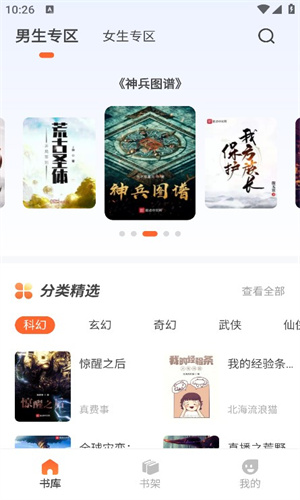 打开软件后,首页设有男生与女生专属阅读专区,便于用户根据个人喜好快速浏览。