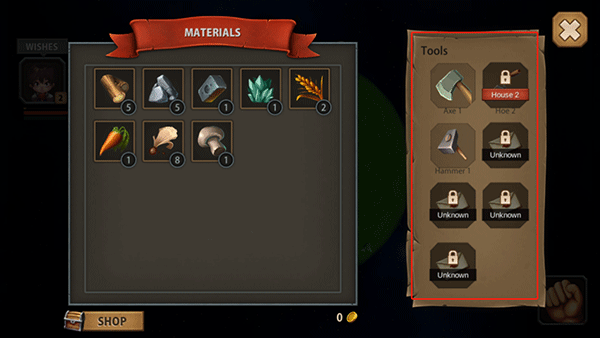 右下角那个紧握的拳头图标,是你与世界互动的开关——点击它,工具栏浮起,所有已拥有的器具在指尖待命。